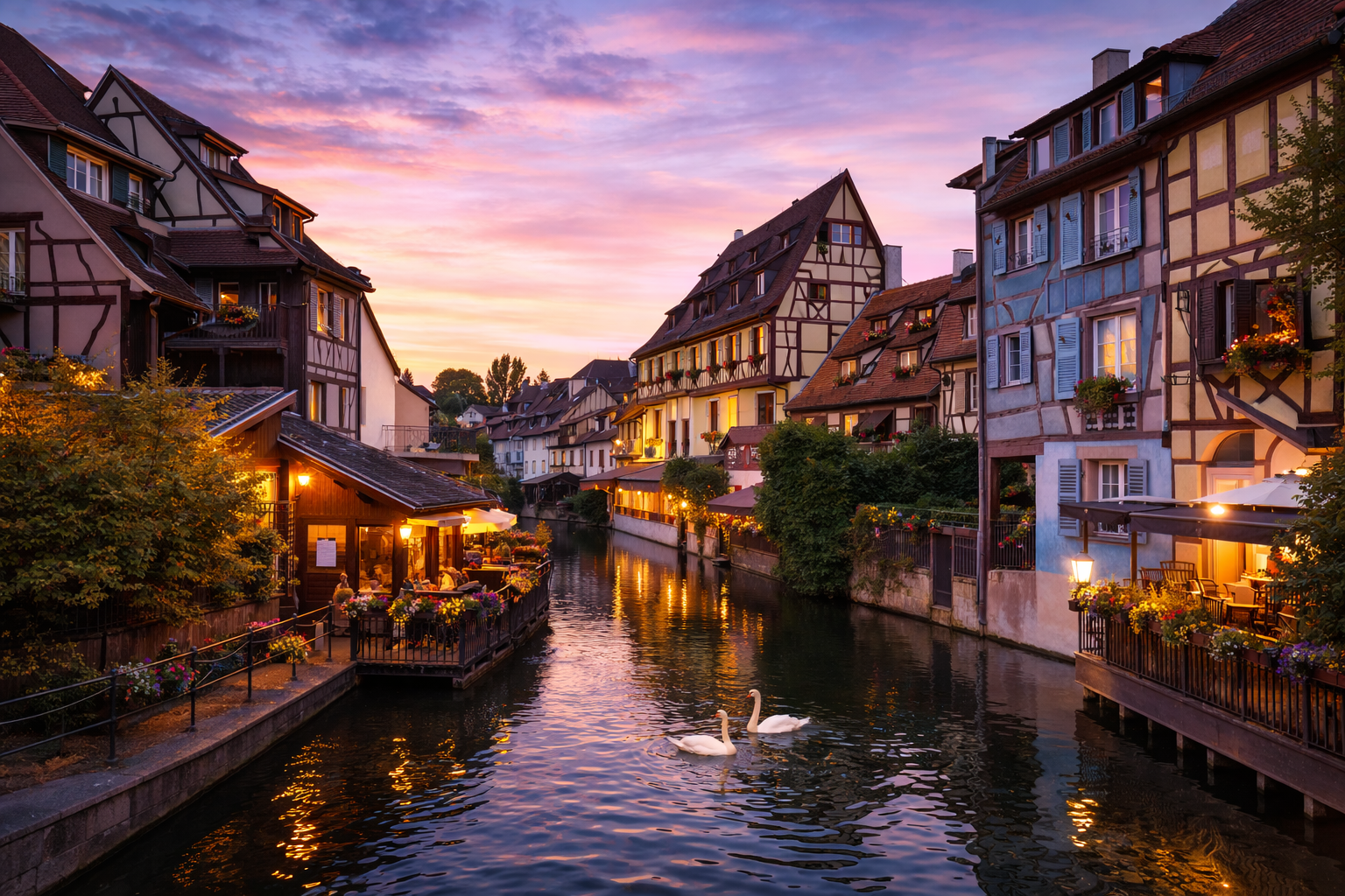 Una pequeña ciudad famosa por sus casas de madera coloridas, canales y ambiente romántico, especialmente en Navidad.